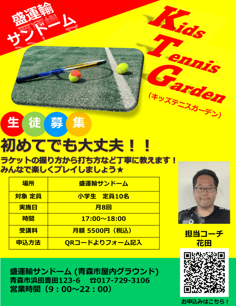 1月開催のキッズテニスガーデンのレッスン日のお知らせです。